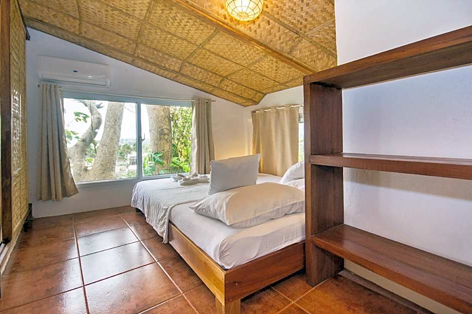 This bungalow features a balcony, air conditioned room- loft bed-views of the Bolabog Bay- hot and cold shower and kitchenette. only accessible via stairs (approx. 90 steps)
